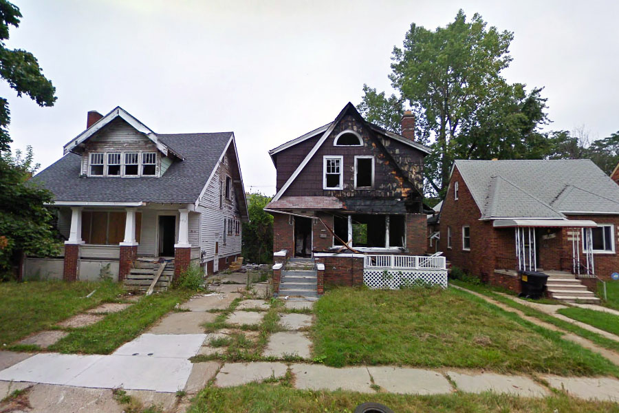 Запад-Робинвуд-стрит. Замечательная улица. Она отлично представляет Детройт как город-призрак. Погуляйте по ней в режиме панорамы.